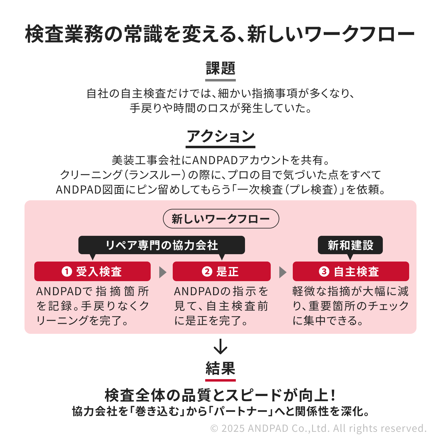 協力会社が検査の新たな担い手に。仕上検査の品質向上の新フロー