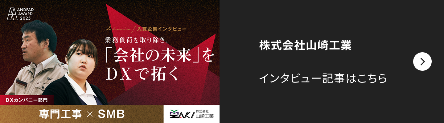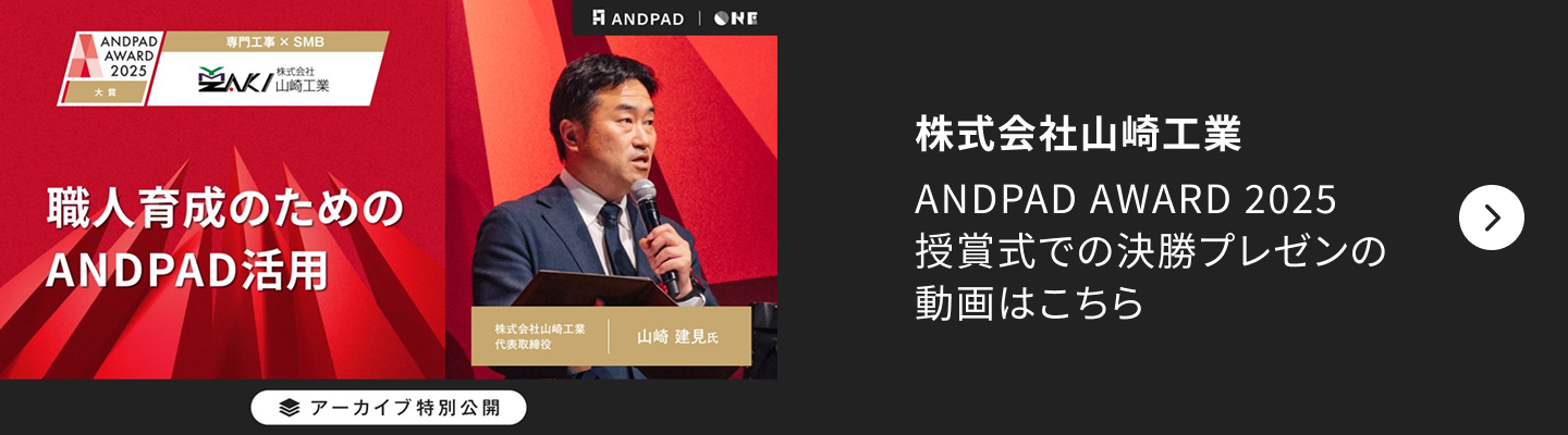 ▼株式会社山崎工業の取材記事・ANDPAD AWARD 2025 授賞式での決勝プレゼンの動画はこちら