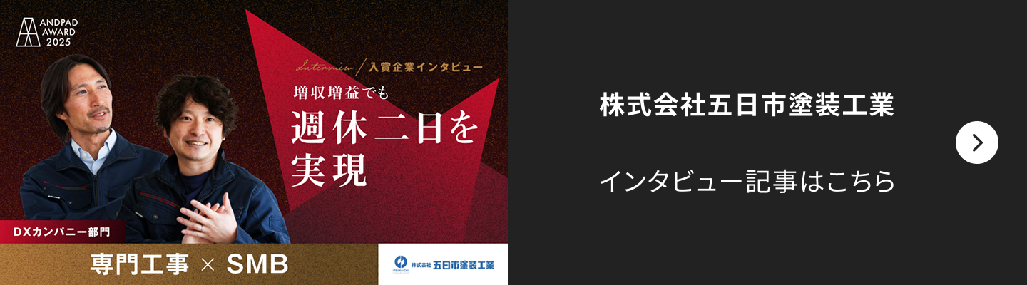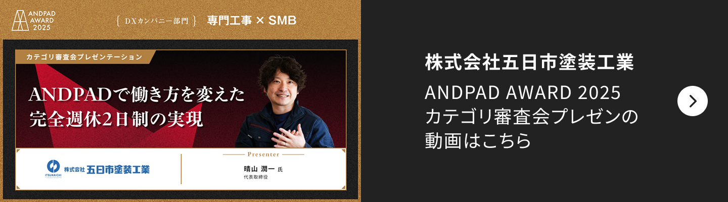 ▼株式会社五日市塗装工業の取材記事・ANDPAD AWARD 2025 カテゴリ審査会のプレゼン動画はこちら