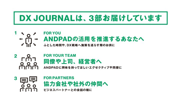 ANDPAD ONEに集まる、各社のDXの多様な歩みを、もっと広く、たくさんのユーザー様にお届けしたい。そんな想いで制作しているのが「DX JOURNAL」です。